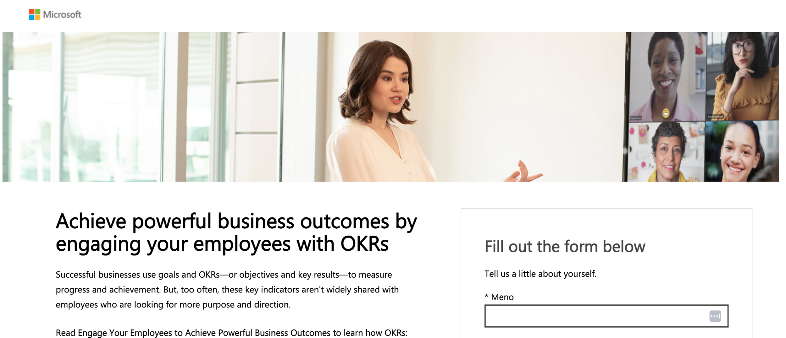 I was hired by the client to create this landing page to drive downloads for an ebook promoting Microsoft Viva.