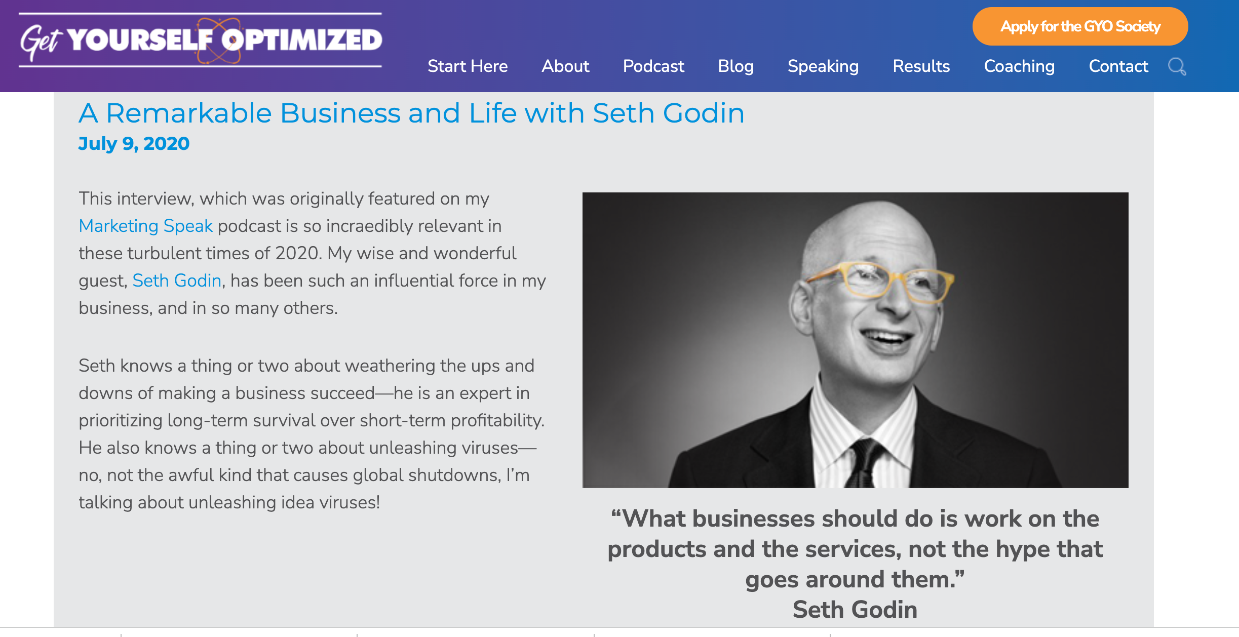 Crafted podcast intros for guests appearing on Get Yourself Optimized, including Seth Godin, Dr. Robert Cialdini, Edward Haschke, Kara Goldin, and dozens of others.